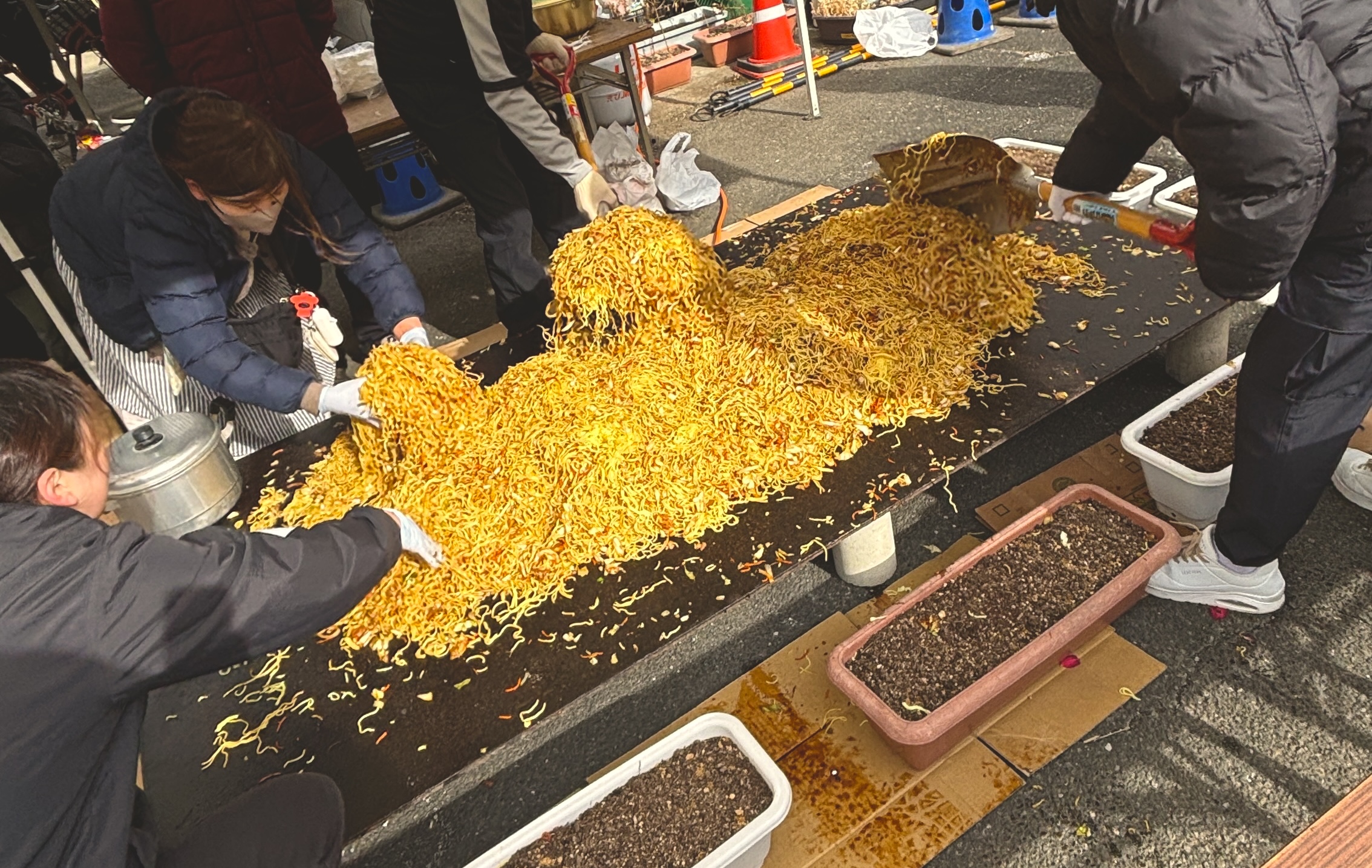 特に、大きな鉄板とスコッで豪快に作る焼きそばは、 見た目のインパクトも相まって、まさに「映え」の極み。