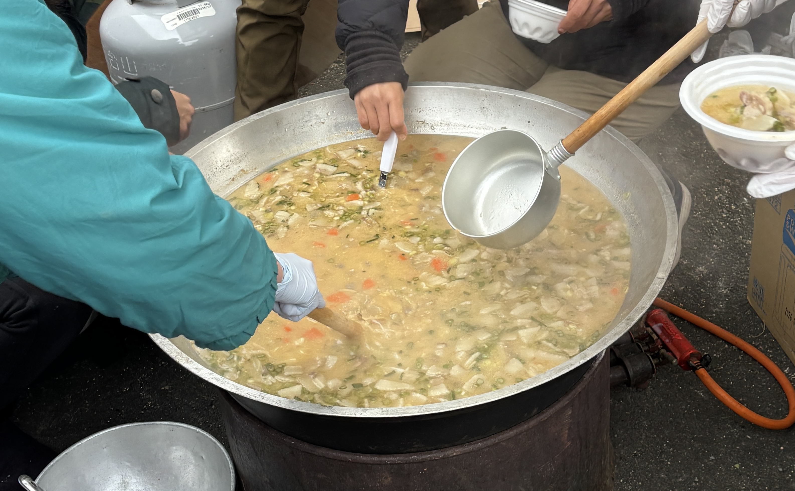 他のチームの方や地域の方々も集まって、みんなでワイワイと鍋を囲む最高の時間でした。